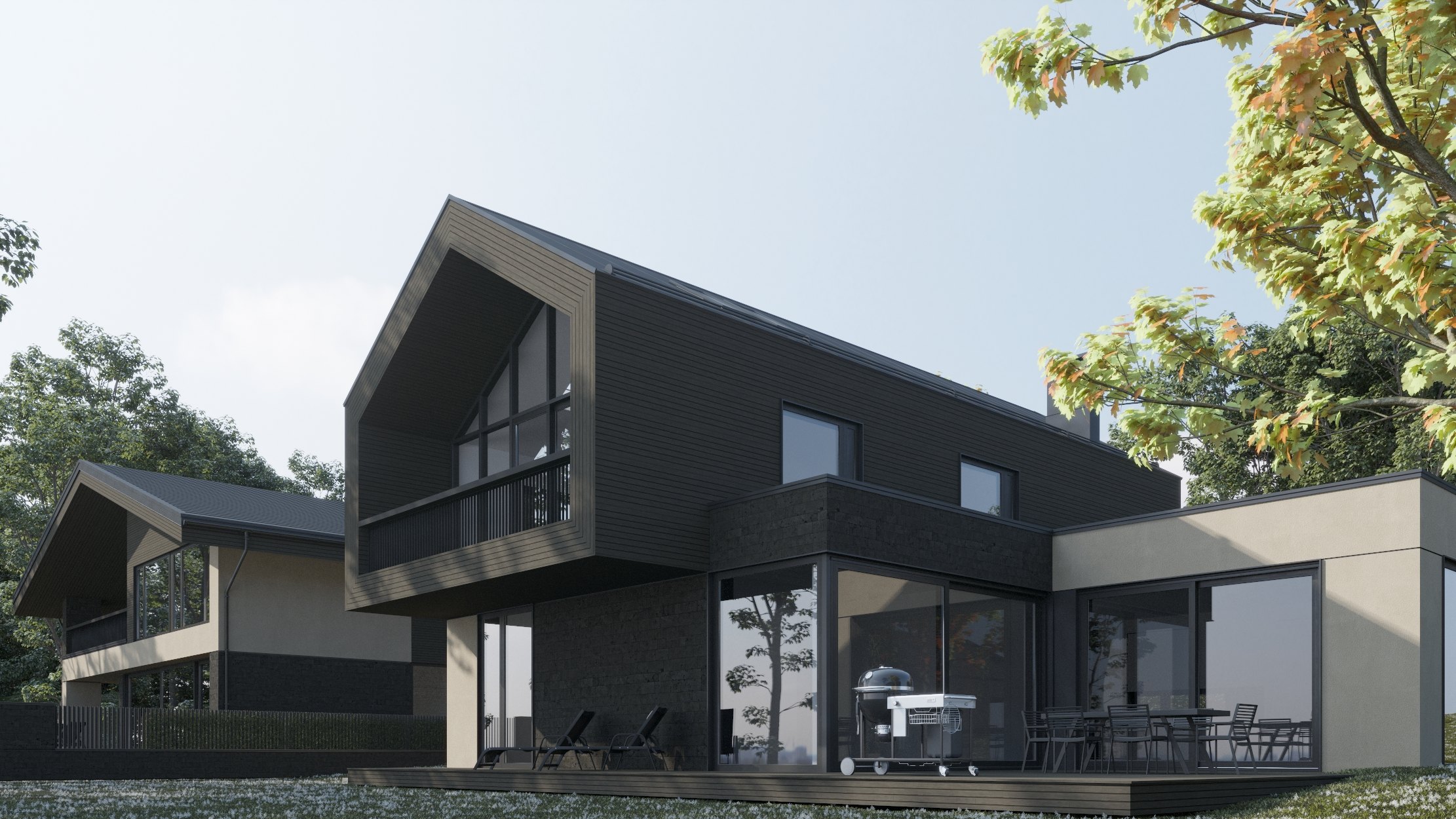 Нам удалось органично вписать современную архитектуру дома в природный ландшафт. Эстетика стиля Barnhouse с простыми линиями, натуральные отделочные материалы в спокойных естественных тонах придают строению эффект полной погруженности в окружающую среду. Участок находится в лесистой местности, где сезонные растения соседствуют с вечнозелеными. Осенью не будет ощущения пустоты от облетевших деревьев, а поздней весной и летом хозяева дома могут любоваться их пышным цветением.
