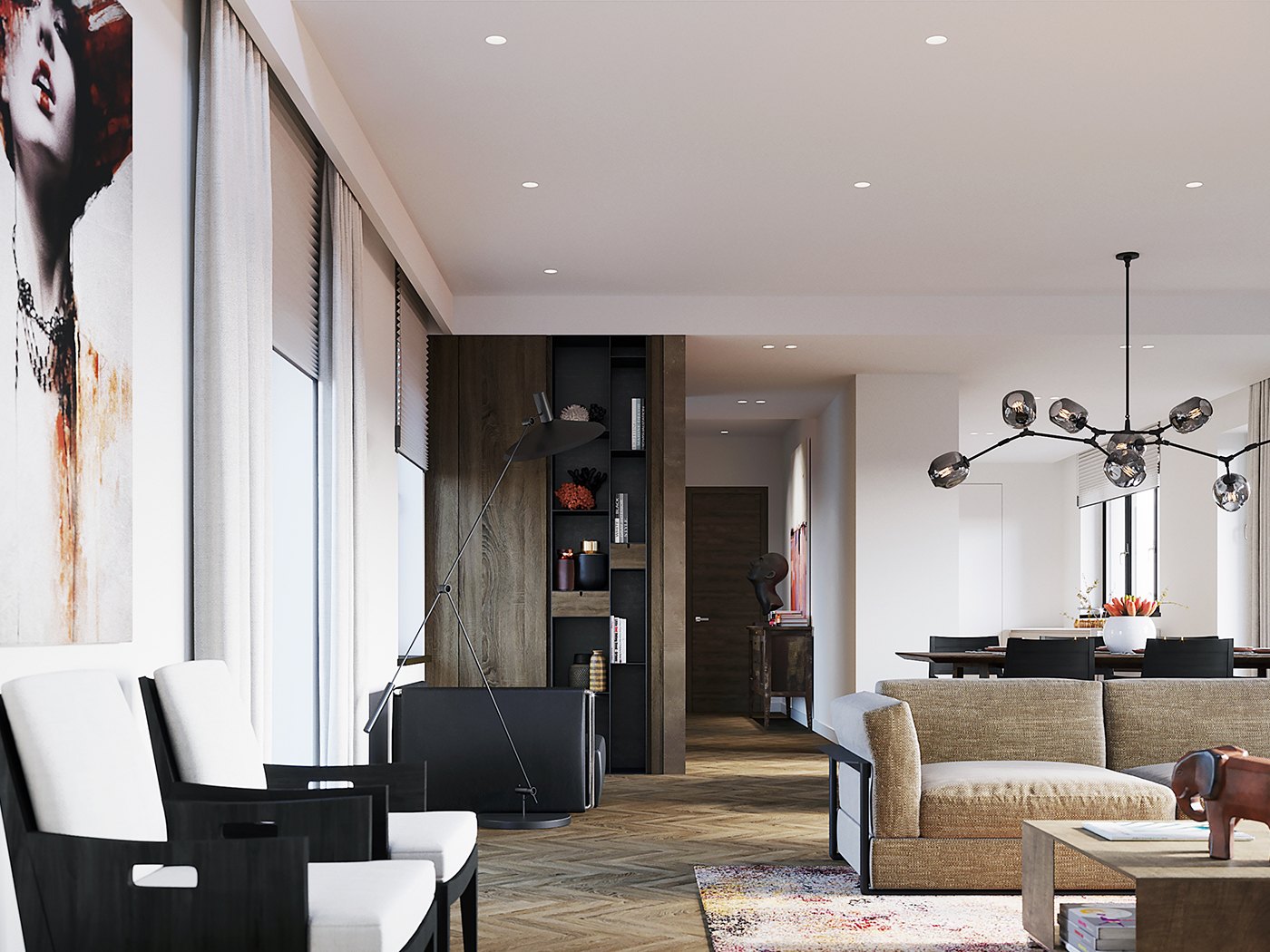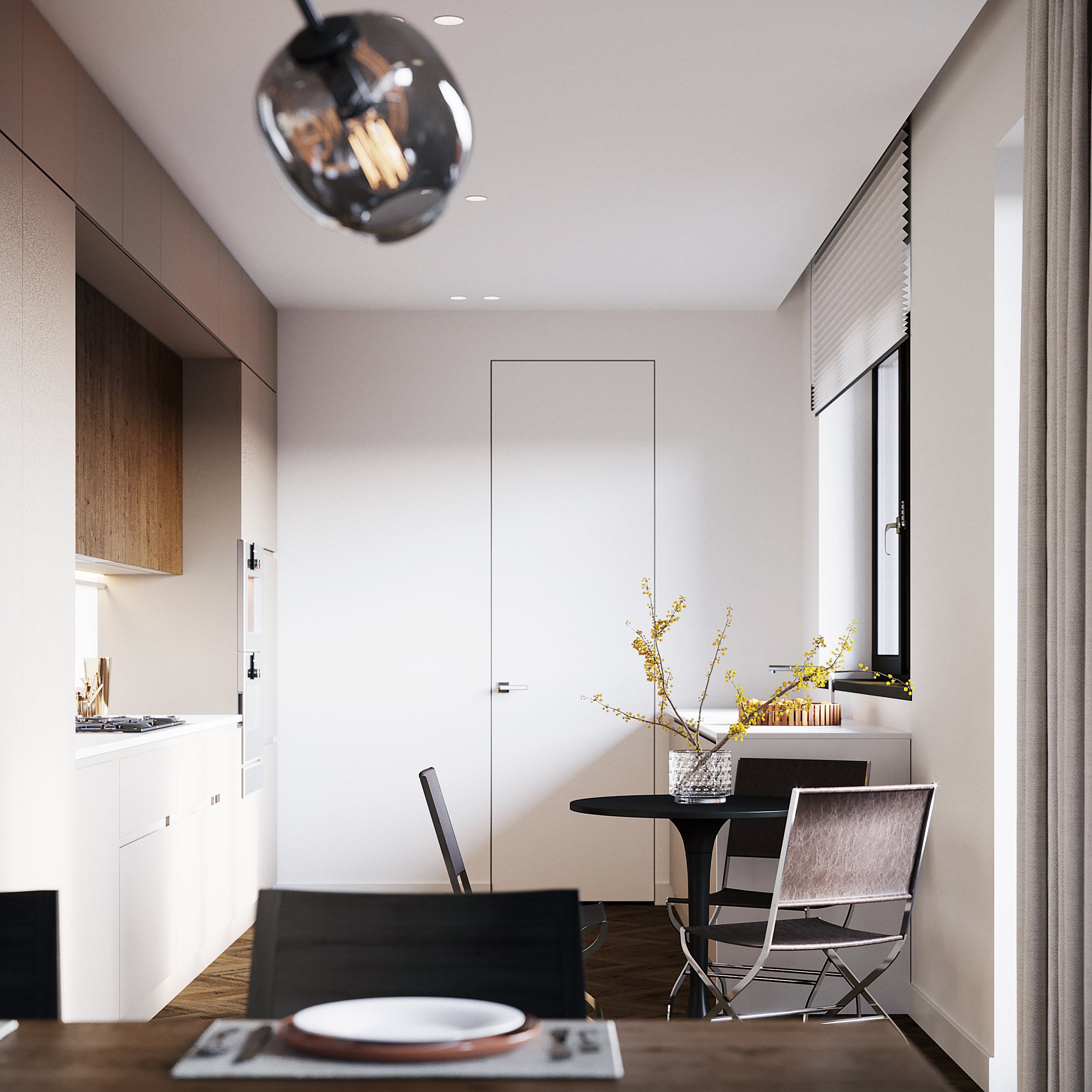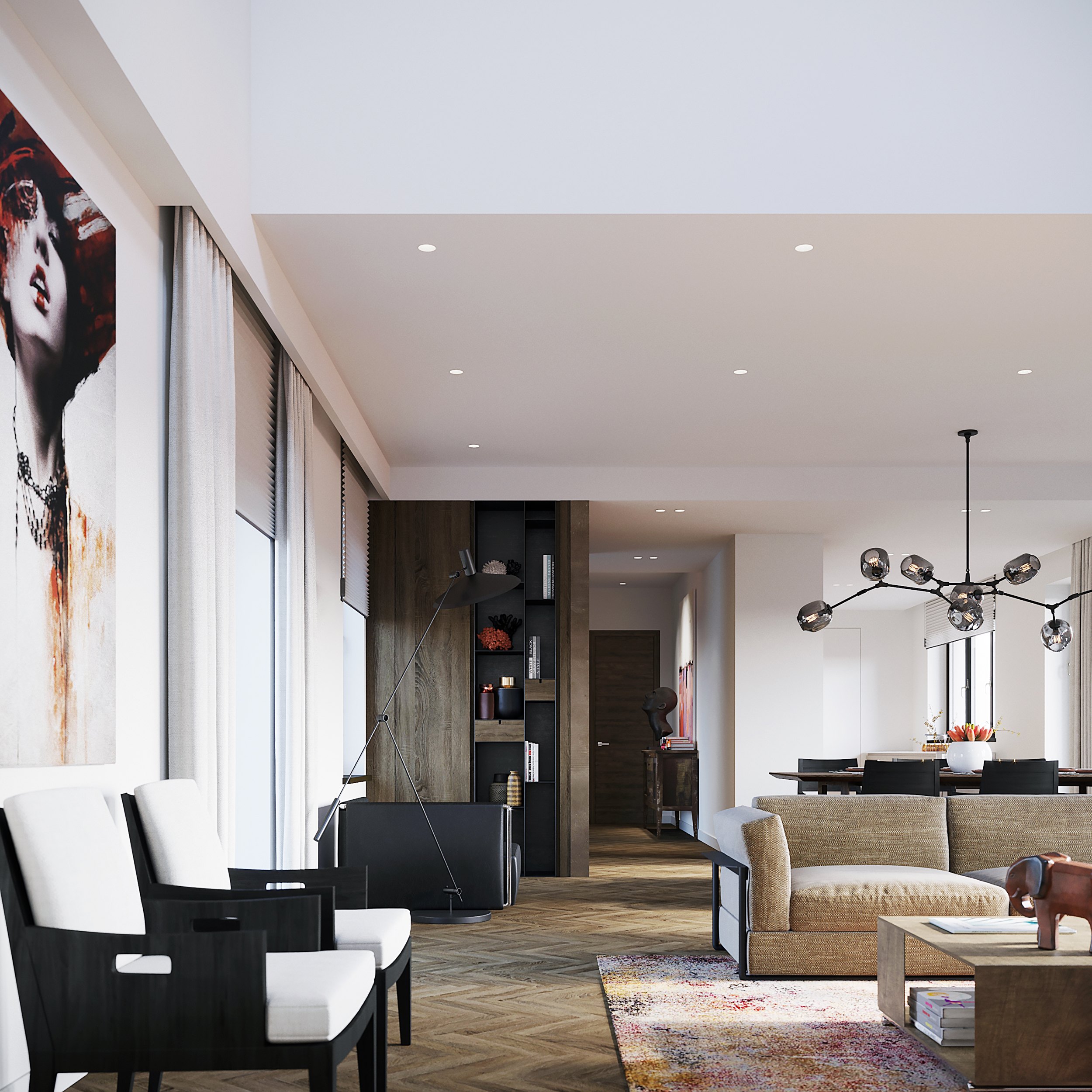 В отделке сделали ставку на сдержанные тона, которые еще долго будут в тренде: белые стены, контрастные шпонированные элементы и много текстиля теплых оттенков. Дополнили интерьер мебелью итальянских фабрик и светильниками Delta Light актуальной формы.