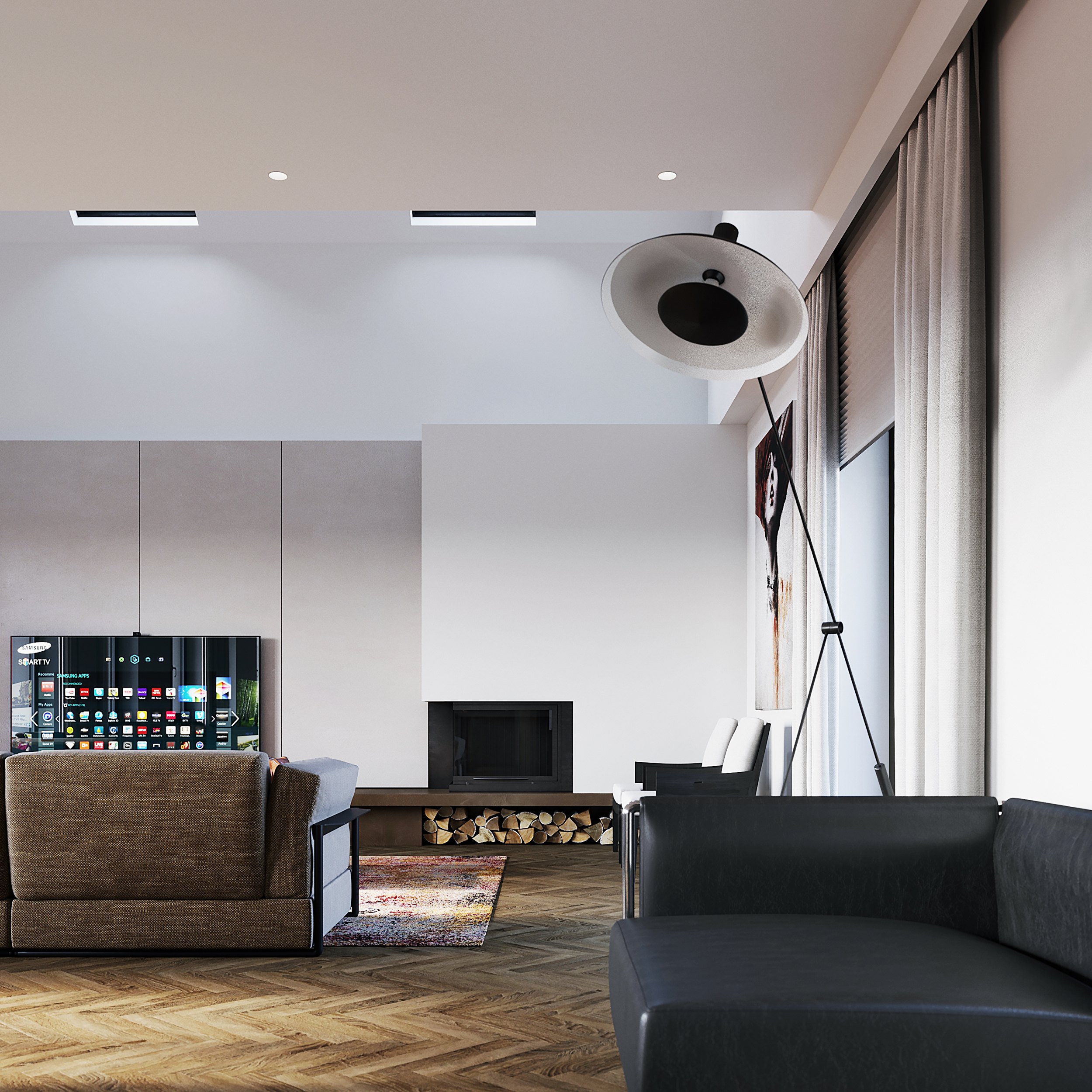 — Планируя каминную зону, заранее продумайте способ хранения дров: будет это отдельно стоящая дровница или конструкция в составе самого камина. Эти решения помогут избежать захламленности. Также обязательно учитывайте расстояние между очагом и мебелью, так как топка не всегда находится в закрытом положении, а соседство с открытым огнем небезопасно.