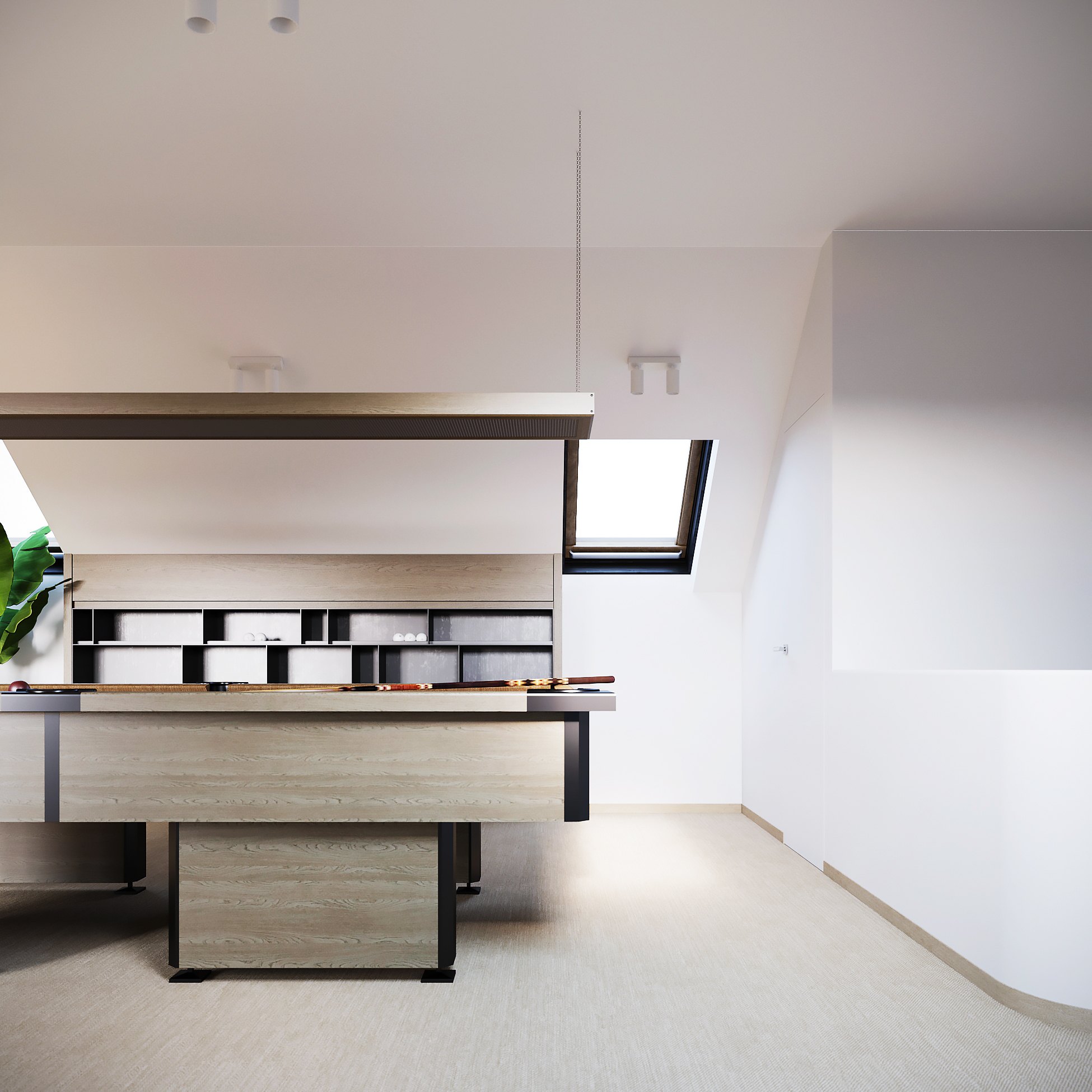 Бильярдная в белой мансарде