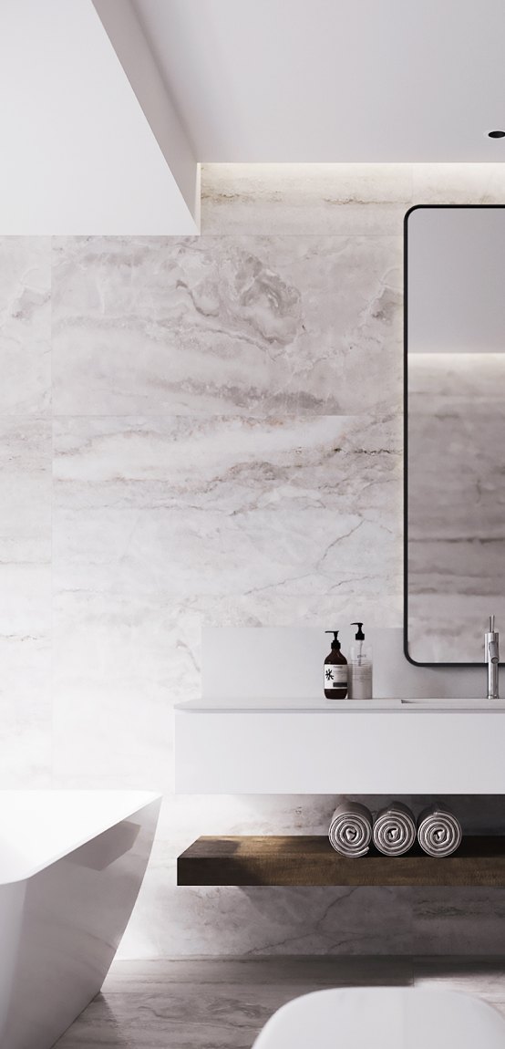 Давнюю мечту хозяев об отдельно стоящей ванне воплотили в жизнь с помощью компании Jacob Delafon, специализирующейся на создании интерьеров ванных комнат во французском стиле. Широкоформатный керамогранит Lafaenza Ceramica, имитирующий натуральный камень, отлично дополнил изысканный интерьер.